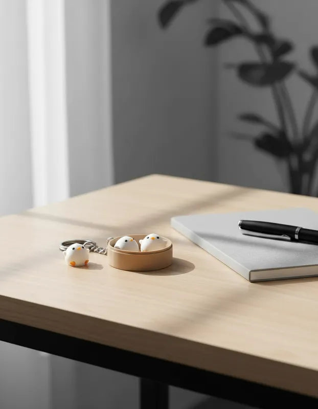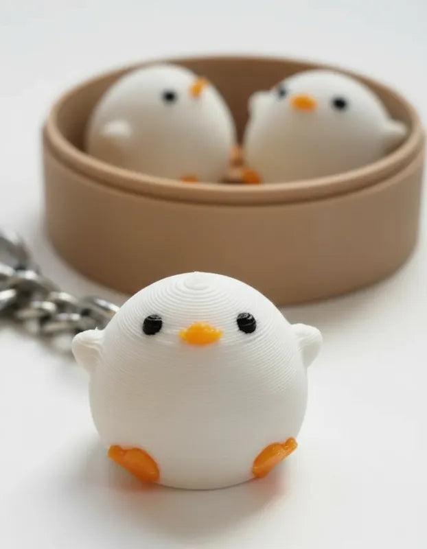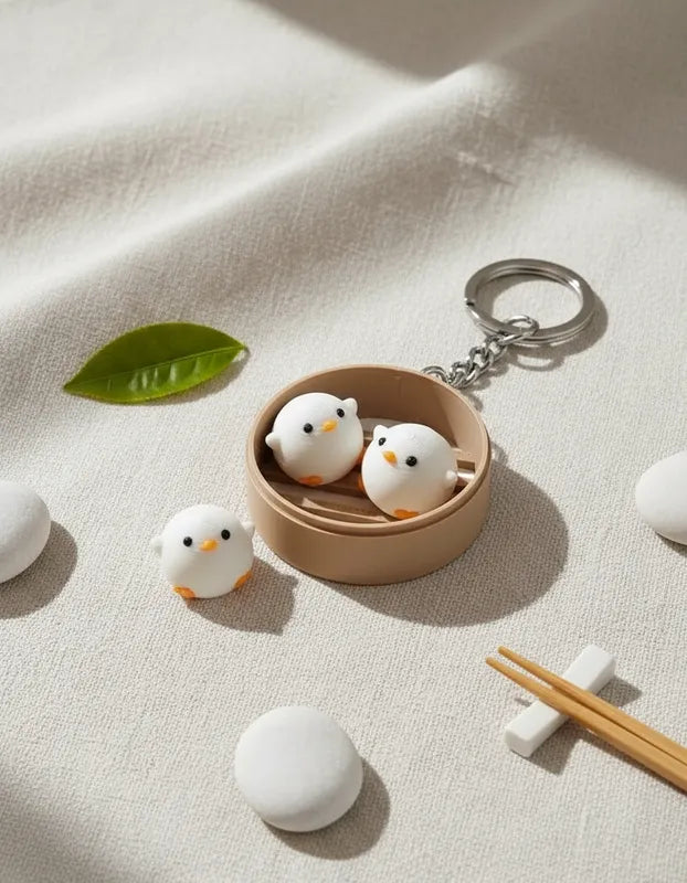¡Lleva contigo la ternura a todas partes! Este llavero de pollitos combina diseño adorable y funcionalidad. Presenta tres pequeños pollitos blancos con detalles naranjas dentro de una mini cesta, ideal para adornar tus llaves, bolso o mochila.